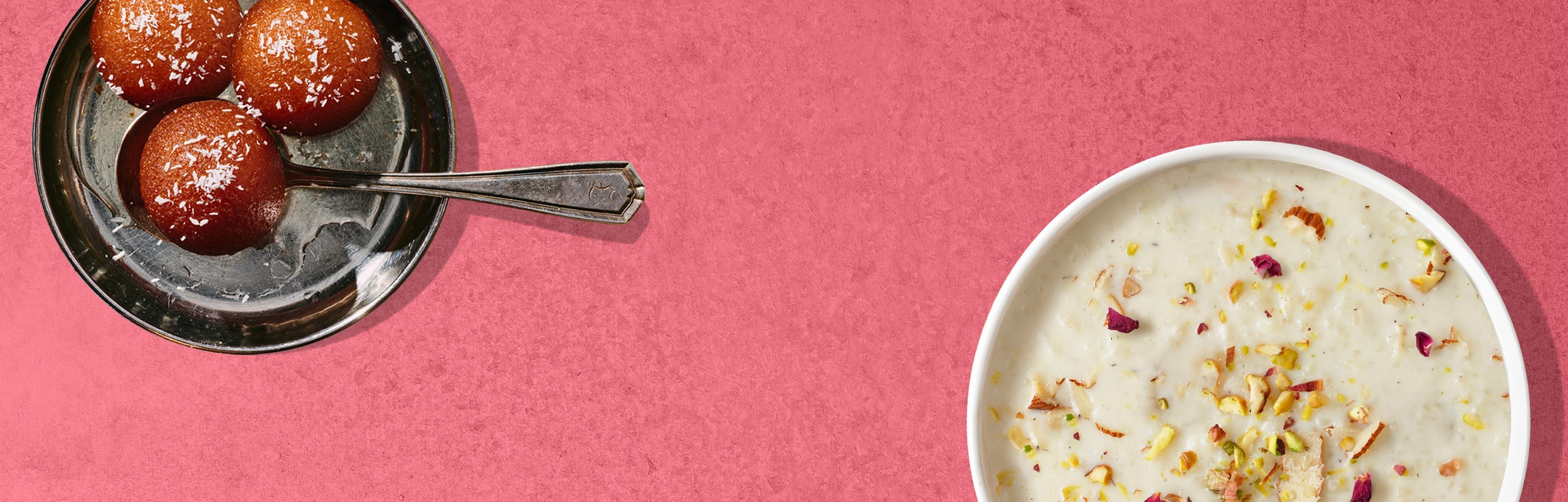 6Milk solid pastry dipped in cardamom & rose flavoured syrup, served warm with a light pistachio garnish