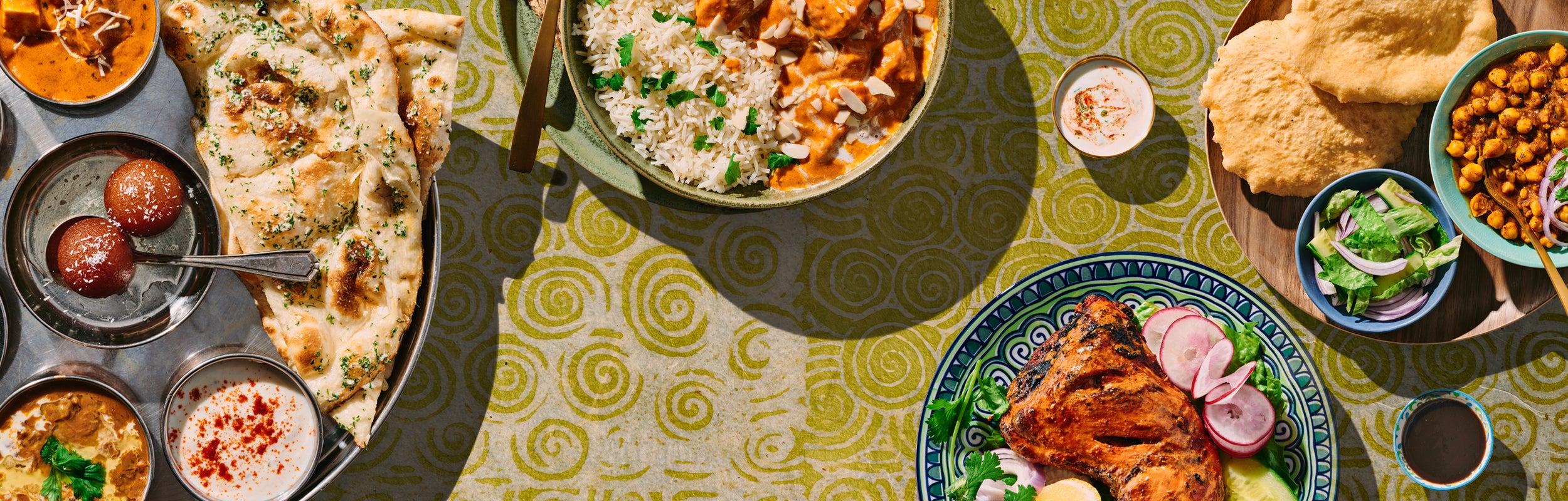 21/22Three curries of choice served with papadam, naan, rice, raita, and dessert